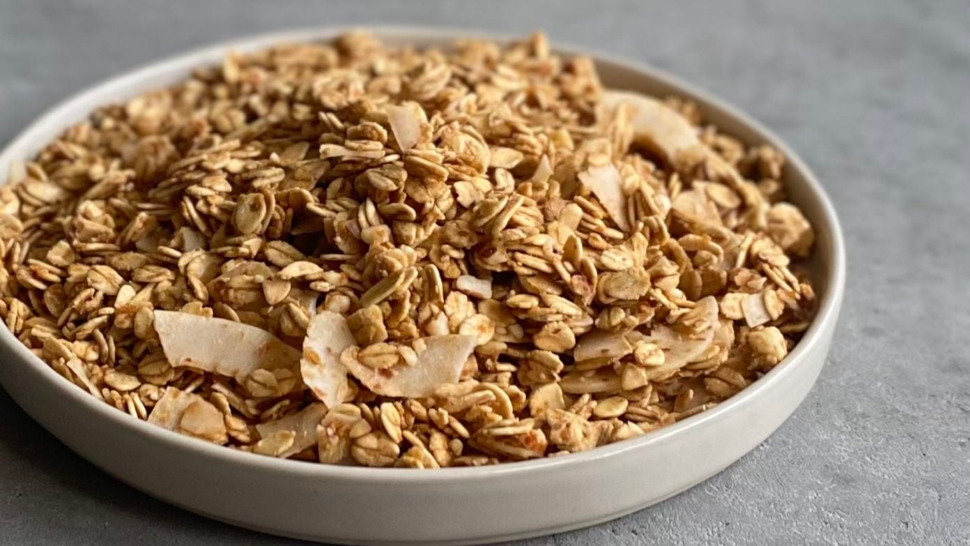 ミューズリーは別袋でお届けします。食べる直前にのせていただき、ザクザクとした食感と香ばしさをお楽しみください。こちらも48度以下、ローフード製法で作る、自家製のミューズリーです。