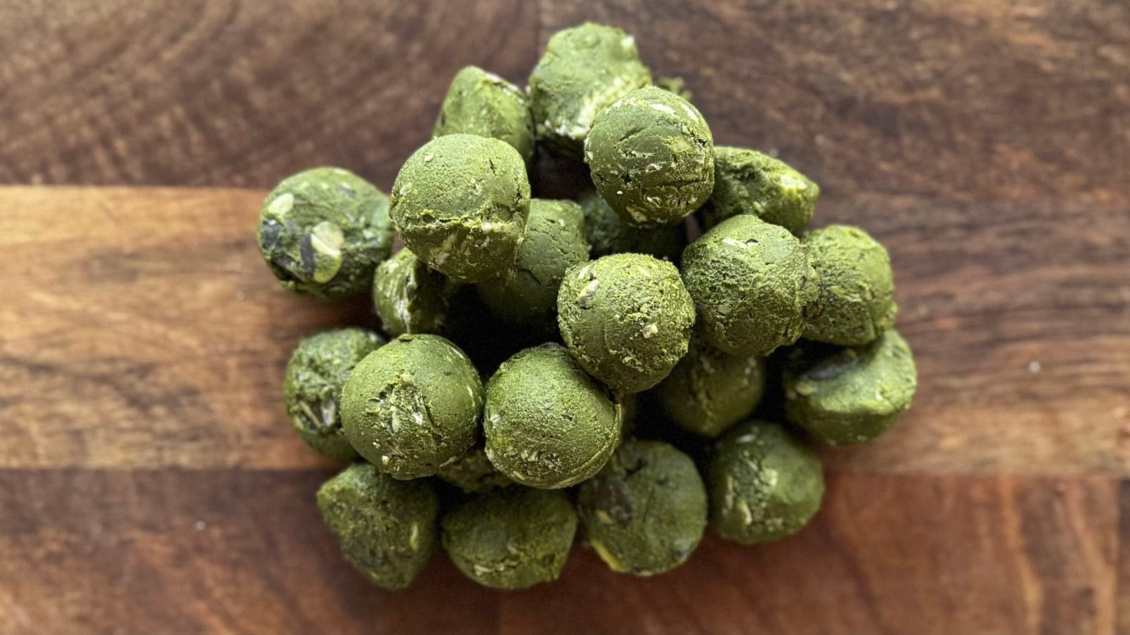 京都の有機宇治抹茶を100%使用。抹茶好きな方には一度食べていただきたいほど、抹茶の濃さをしっかり感じられるはず。パンプキンシードも入っていて食感のアクセントになっています。 -