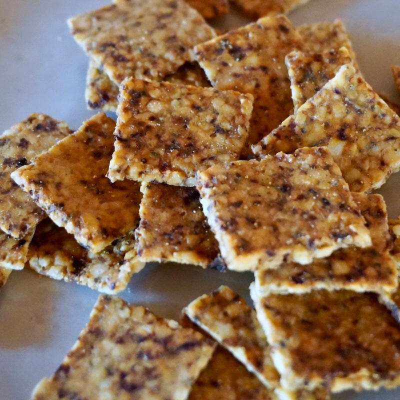 【トマトバジルピザ:ロークラッカー】マルゲリータをイメージしたロースナック。ドライトマトの旨みが噛むほどに広がる、おつまみ感覚の一品。