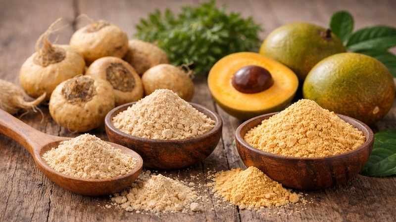 マカは南米ペルーのアンデス高地で育つスーパーフード。古くから滋養食として親しまれ、エネルギー補給や疲労回復、女性のコンディションサポートに役立つとされています。ルクマは南米アンデス原産のフルーツで、「インカの黄金」とも呼ばれる栄養豊富なスーパーフードです。鉄分やエネルギー補給、コンディション維持に役立つとされています。どちらも、日々の活力やバランスを整えたい方におすすめの栄養素材です。 -